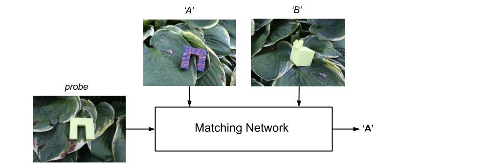50年以后,对于能够进行小样本学习的深度神经网络,我们有了同样的问题。比如 Matching Network——DeepMind 开发出的一种神经网络。这一模型采用了注意力和记忆方面的最新进展,凭借一个孤立样本就取得了 ImageNet 图像分类任务中的目前最佳性能。