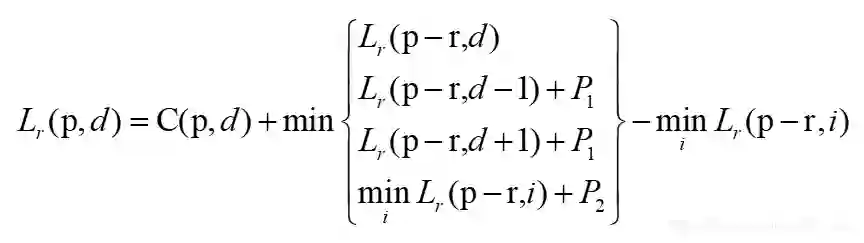 // Lr(p,d) = C(p,d) + min( Lr(p-r,d), Lr(p-r,d-1) + P1, Lr(p-r,d+1) + P1, min(Lr(p-r))+P2 ) - min(Lr(p-r))
