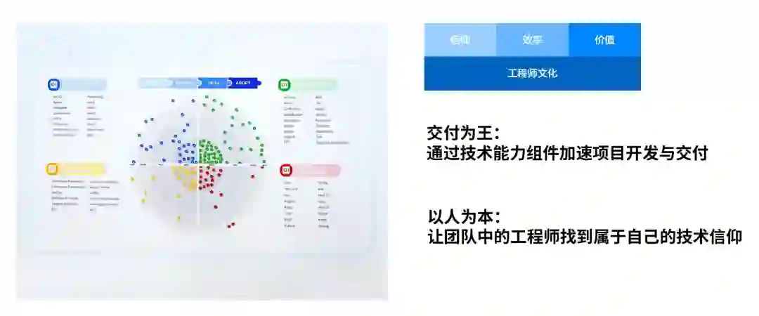 第二,以人为本,通过学习和分享的氛围、技术雷达,让团队中的工程师都能找到属于自己的技术信仰。同样,我认为很多 HR 同学,以及技术领导者需要注意一个点,为团队的成长投资。