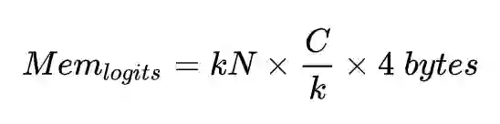 通过这个公式我们发现,即使有更多的类别数,只要增加GPU的个数,就可以维持 w 占用的显存不变。我们再看 logits,假设每张卡上的批次大小为 N,则对于分类层的总批次大小为 kN ,每块GPU中 logits 占用的显存为: