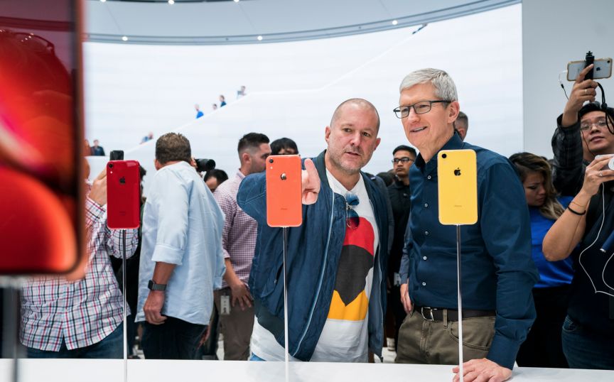2018年9月,乔尼斯和库克在iPhone Xr的展台前