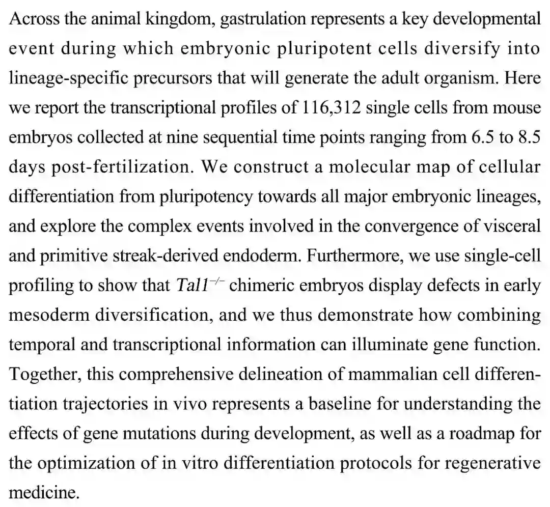 小鼠原肠胚形成和早期器官发生的单细胞分子图谱