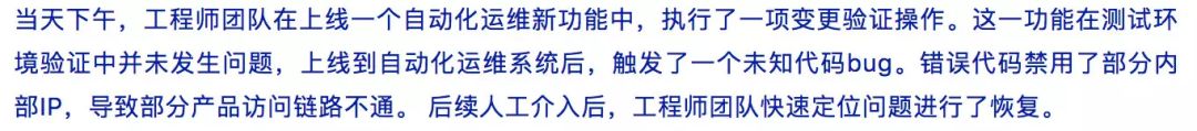 这个说法有木有很耳熟?与6月27日的阿里云故障如出一辙:
