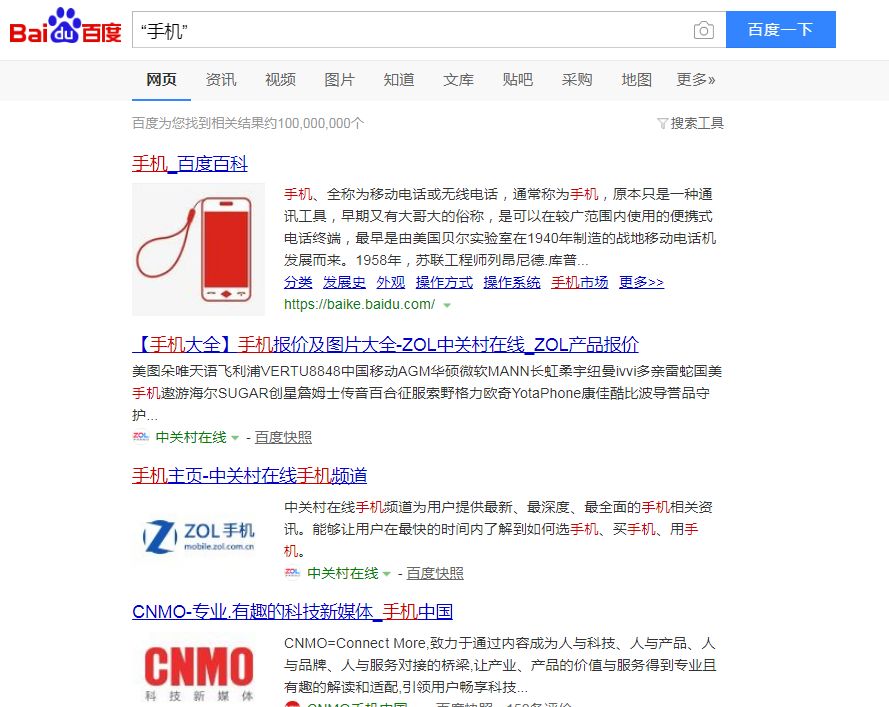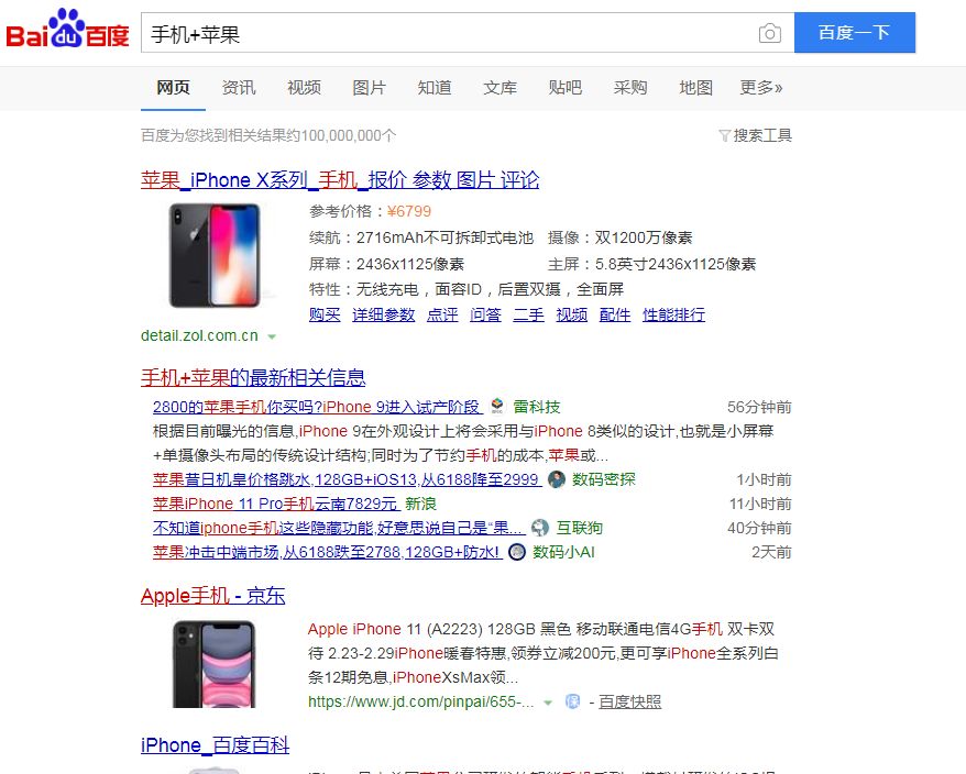上图就是我以手机为例搜索出来的结果,前面全部都是广告。而且总共有一亿条搜索结果,这个结果显然是杂乱的。