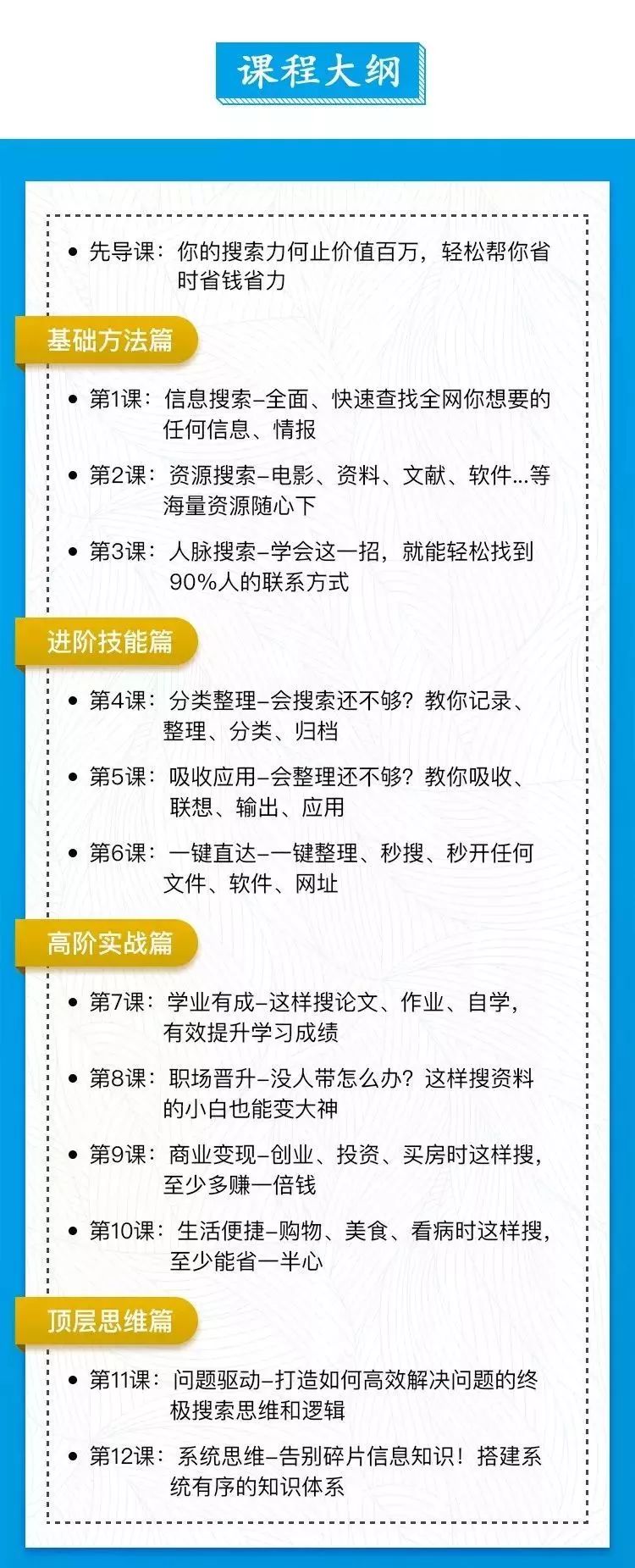 2、打造顶级思维模式:超实用技巧全程手把手讲解,帮你打造如何高效解决问题的终极搜索思维和逻辑,学到就是赚到。