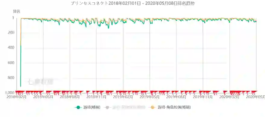 这主要得益于B站独代新游《公主连结》在4月17日上市后取得的不错成绩。Sensor Tower数据显示,4月中国区iOS手游畅销榜中,上线不到两周时间的《公主连结》排在第7位,带动B站游戏收入环比增长了378%。