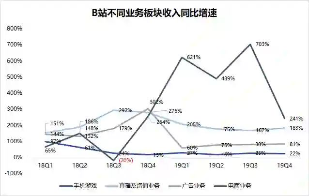 另一方面,B站的游戏业务也需要找到新的增长动力。对比2018年各季度的情况看,B站2019年的游戏收入增速整体已有所放缓。