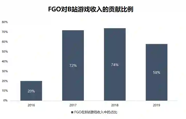 一方面,现在的B站急需在《命运-冠位指定》(即FGO)之外,找到新游戏IP。过去几年,B站的游戏收入一直都依靠FGO一款独代游戏,2019年FGO的贡献比例为58%,依然占据半壁江山。