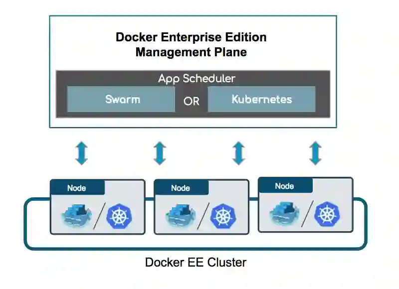 图3表示了Docker运行管理平台需要用像K8s或Sworm这样的APP调度和部署工具来运行管理众多的节点集群。