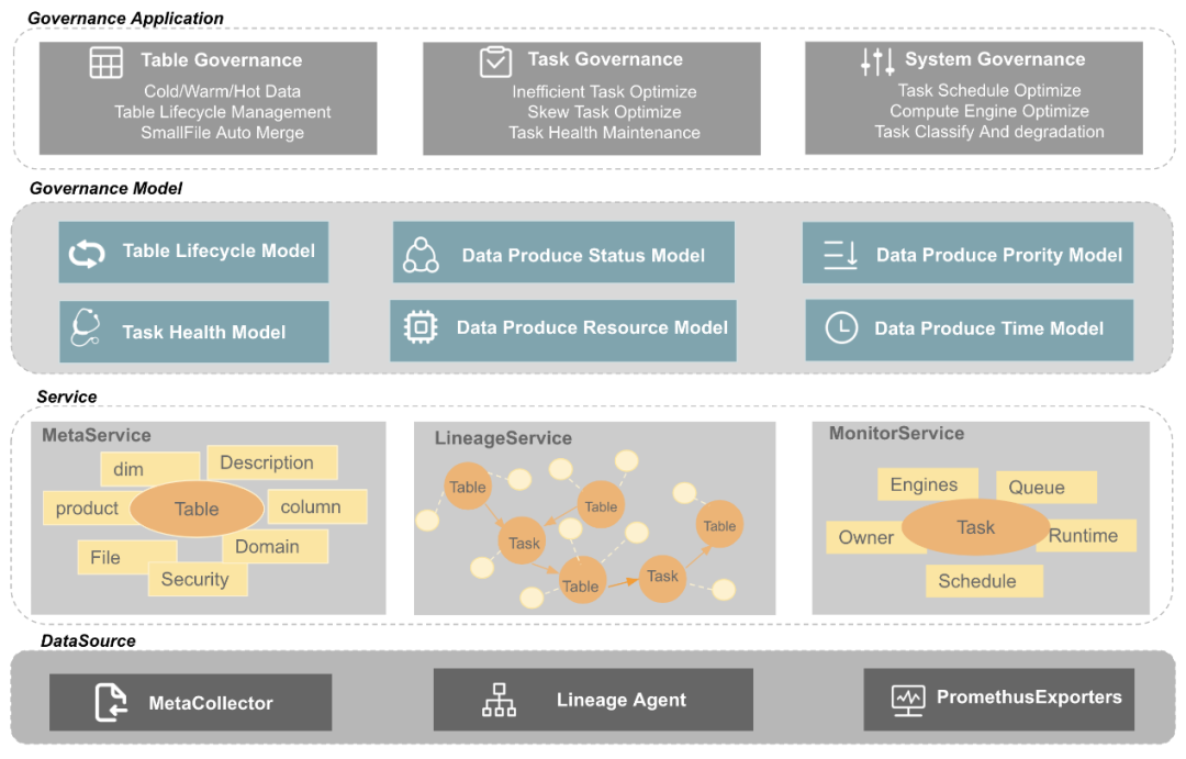 主要用于识别表的访问热度,根据表的访问次数来进行自动化分类:Hot, Warn, Cold,数据治理服务中的 Task Governace Module 即是在 Table Lifecycle Model 的基础上实现模型,策略,执行等全流程自动化治理。