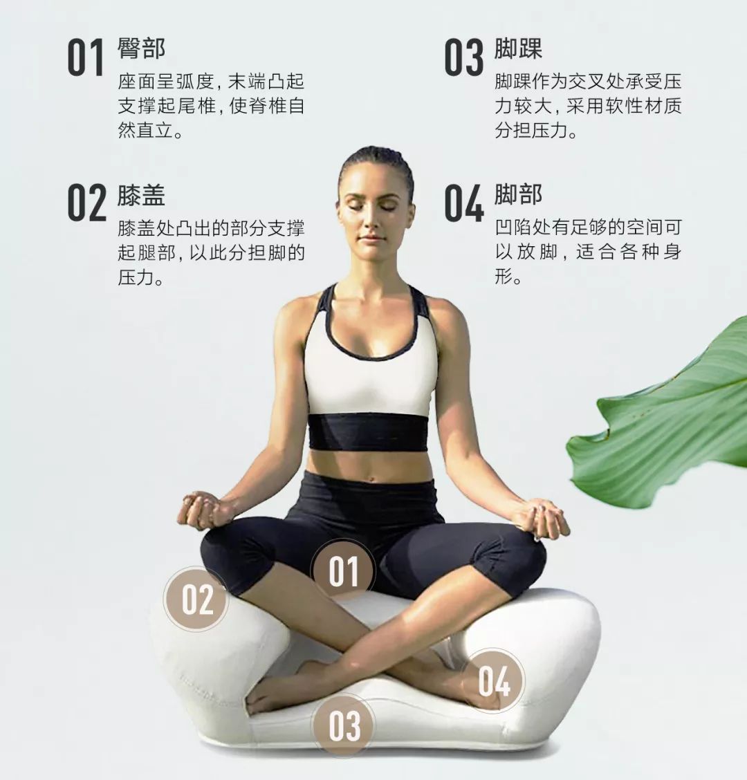 坐者双腿可盘踞于盘腿空间内,脊椎在整个过程中都处于自然挺立状态。