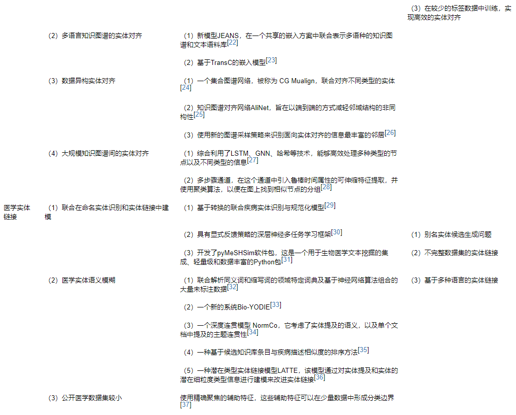 实体对齐是判断多源异构数据中的实体是否指向真实世界同一对象的过程。如果多个实体表征同一个对象,则在这些实体之间构建对齐关系,同时对实体包含的信息进行融合和聚集。由于目前将实体对齐应用于医学领域的研究文章较少,因此本节主要介绍实体对齐,而不是医学实体对齐。