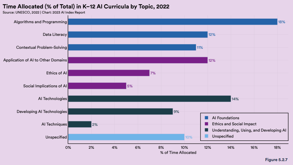 截至 2021 年,包括比利时、中国和韩国在内的 11 个国家 / 地区已正式认可并实施 K-12 AI 课程。