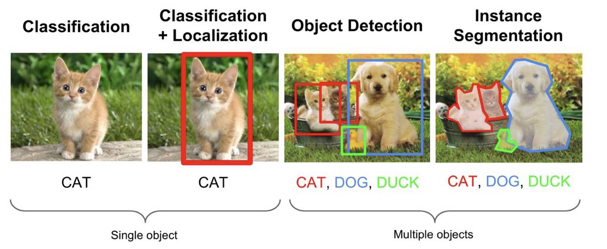 经典计算机视觉任务(图像来自 Stanford cs231n 课程幻灯片)