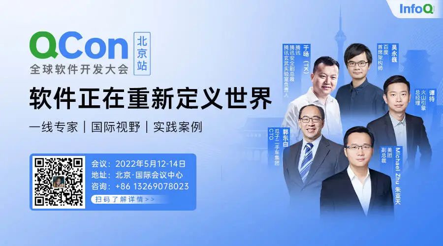 2022 年 5 月 12-14 日,QCon 全球软件开发大会落地北京,会议设置数据湖存储底座、开源运营、研发效能提升、分布式数据库、大规模集群调度等技术等 28 个方向,邀请美团、阿里、腾讯、字节、微软、华为、PingCAP 等知名公司一线技术专家现场分享其业务实践与落地经验。