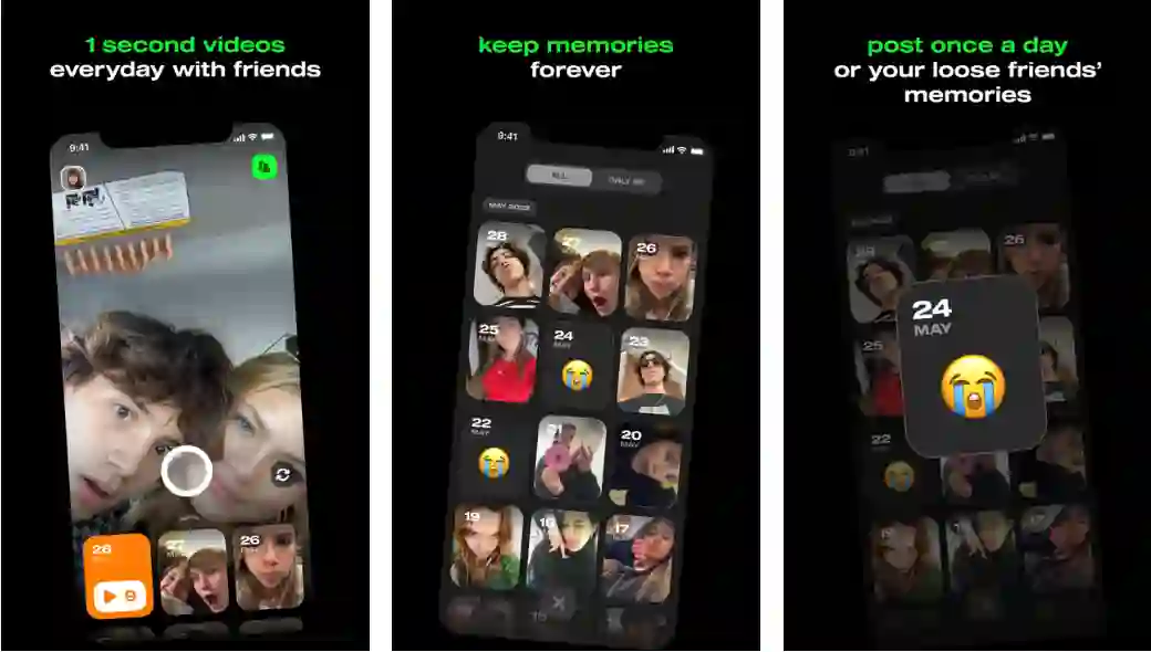 用户以及好友上传的所有 1 秒视频都将以“日”为单位存储在平台,用户可以随时翻看那些有趣的瞬间。