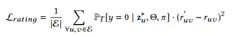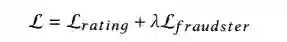 更具体的,对于基于GCN的推荐组件来看,其损失函数为平方损失。与一般的损失函数不同的是增加了欺诈检测组件中真实用户的概率,即如果该用户的真实性概率较大,那么其在整个推荐任务中的比重会被增强。