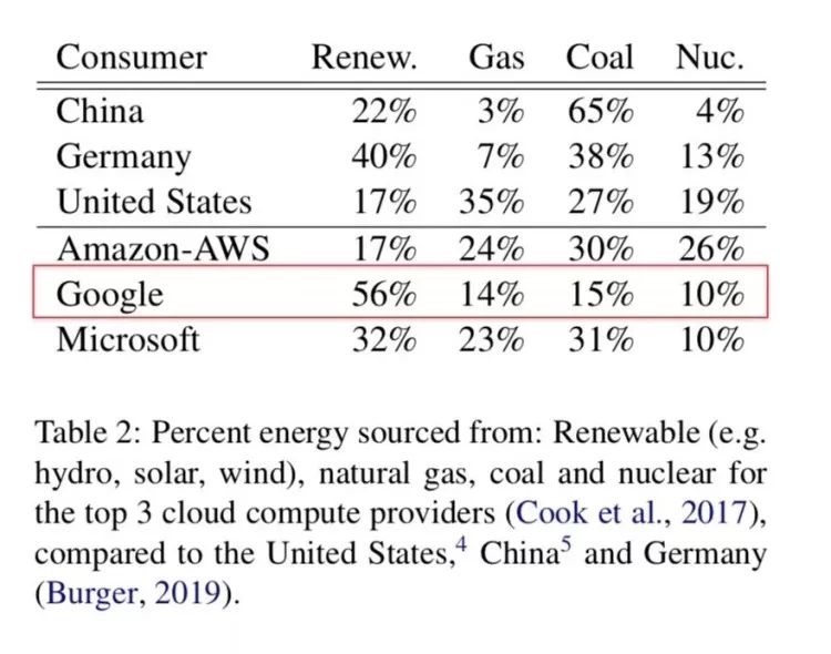 (不过总体来讲,TPU 仍是目前深度学习领域碳排放最小的计算硬件,而且 Google 的数据中心用电56%来自可再生能源,显著高于 AWS 和 Azure。)
