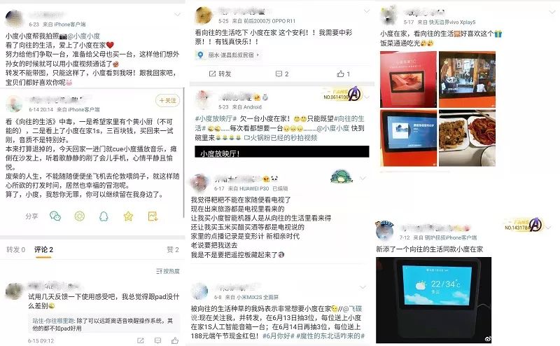 如今,《向往的生活》最新一季已经落下帷幕,而小度在家则借由这种IP合作形式“种草”了许多用户,效果明显。以“小度在家”和“向往的生活”两大关键词进行搜索,微博上以此为中心的探讨不在少数,从内容上分析,上至中老年、下至年轻人,均成为了小度在家的覆盖用户群体,其中有部分群体更是在看了节目之后购买了同款小度在家音箱。