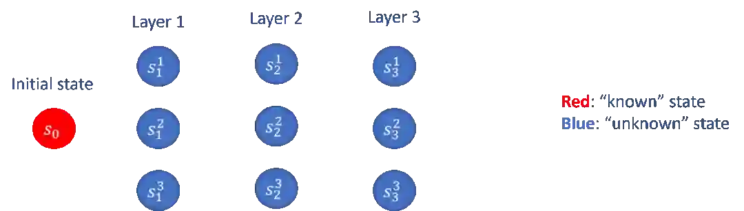 图5:“逐层推进”的探索策略(以3层的离散马尔科夫决策过程为例)