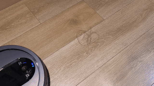 头发测试主要测试的不是吸力,而是扫地机的防缠绕能力,下边就让我们来看看这两款扫地机器人的防缠绕能力。