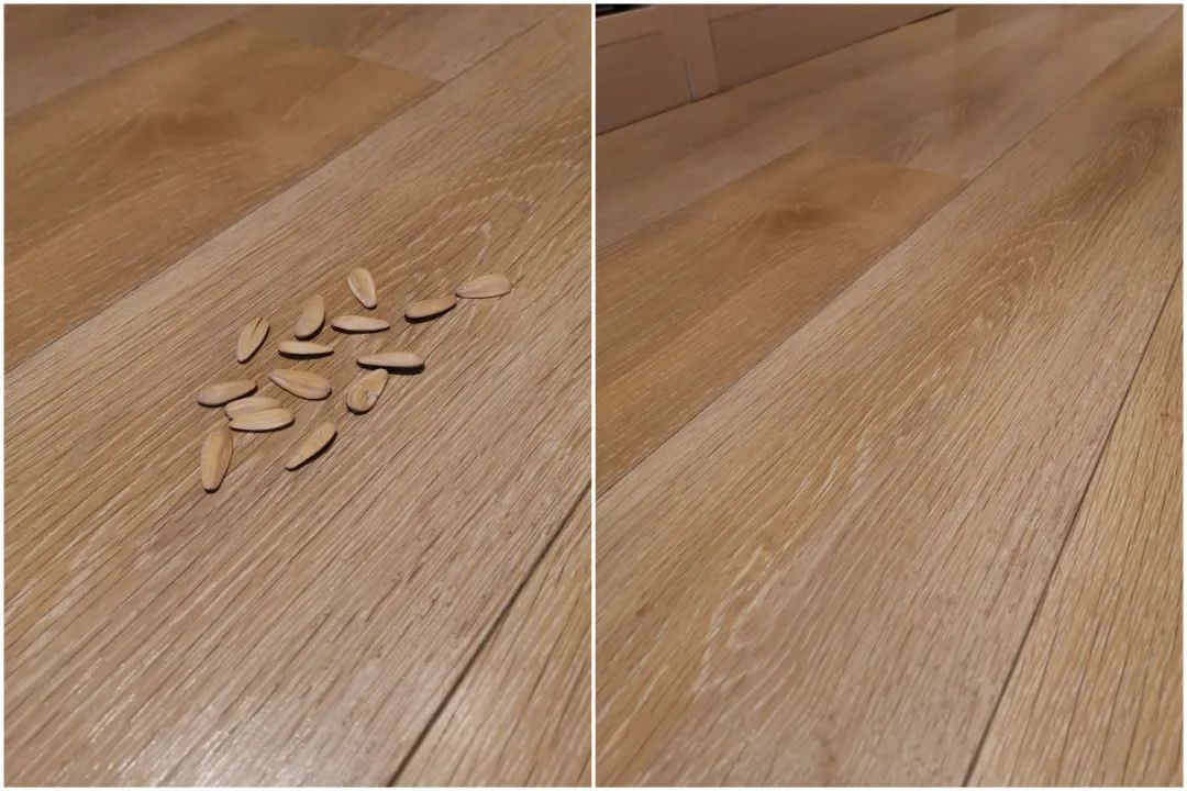 鲨客清扫瓜子的时候轻轻松松就搞定了,没有任何的残留。