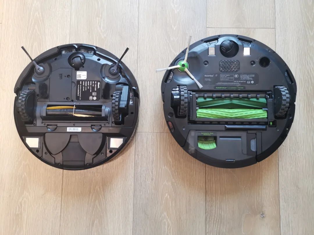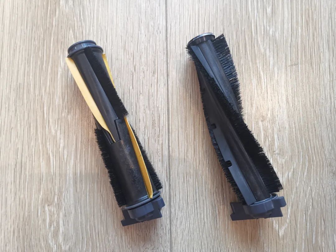 irobot是双效组合胶刷,一根负责剥离污垢,一根负责扫入污垢,边刷配备的是三根毛刷的单边刷。