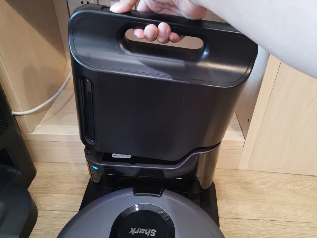 鲨客的尘盒是直接上提就可取下的,倒垃圾也很方便按一下旁边的按键就可以把垃圾都倾倒出去,一般一个月倒一次即可。
