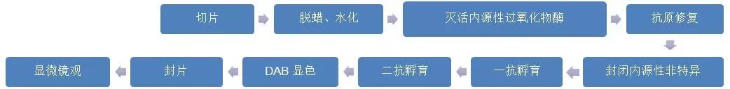 那么,怎样做出漂亮的染色结果呢?小伙伴们,莫急!为了有一个全局概念,我们先来看一下石蜡切片免疫组化的实验流程吧!每一步都存在许多决定成败的小细节,它们可以是陷阱,也可以是获得好的实验结果的基石。