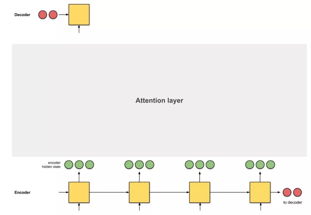 注意力是编码器和解码器之间的接口,它为解码器提供每个编码器隐藏状态的信息(图 0.3 中的红色隐藏状态除外)。通过此设置,模型能够有选择地侧重输入序列的有用部分,从而学习它们之间的 alignment。这有助于模型有效地处理输入长句 [9]。