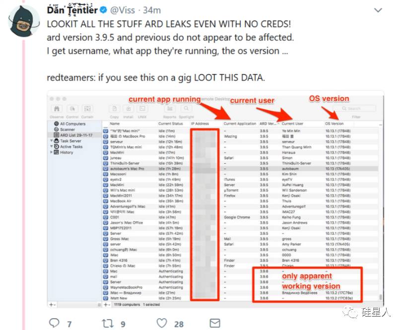 Twitter 用户 @Viss 打开了苹果自家推出的网络管理工具 RDP 以及其它网络嗅探工具,用 root 用户名和空密码组合,开始暴力盲试网络上所有安装了 macOS High Sierra,并且打开了远程控制端口的电脑……