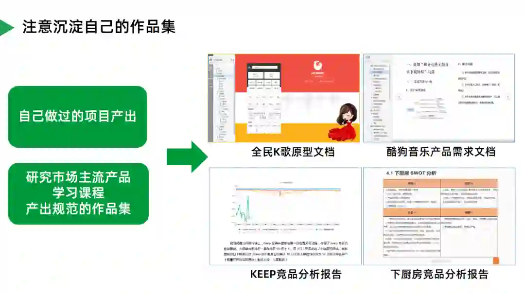 照着网上的文章模板写写竞品分析、用户体验报告,或者对着app复刻几张产品原型,写写PRD