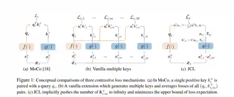 本文通过新的概率建模方法,对对比学习的最新发展进行了有益的改进。我们推导了一种特殊形式的对比损失,称为联合对比学习(JCL)。JCL隐含地涉及到同时学习无限数量的查询键对,这在搜索不变特征时带来了更严格的约束。我们推导了这个公式的上界,它允许以端到端训练的方式进行解析解。虽然JCL在许多计算机视觉应用程序中实际上是有效的,但我们也从理论上揭示了控制JCL行为的某些机制。我们证明,提出的公式具有一种内在的力量,强烈支持在每个实例特定类内的相似性,因此在搜索不同实例之间的区别特征时仍然具有优势。我们在多个基准上评估这些建议,证明了对现有算法的相当大的改进。代码可以通过以下网址公开获得