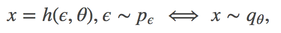 其中变量的 pdf 出现在被积函数中。如果我们可以找到有关其第二个参数的可微分函数 h:(E,Θ)↦X,和易于采样的 pϵ 对 E 的概率分布,下式则会成立: