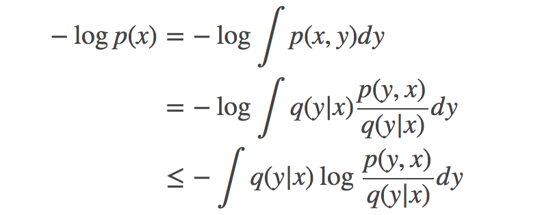 詹森不等式(Jensen's inequality):凸函数的平均值永远不会低于平均值的凸函数取值。一般出现在下面的标准证据下界(standard evidence lower bound/ELBO)推导的一些变体之中: