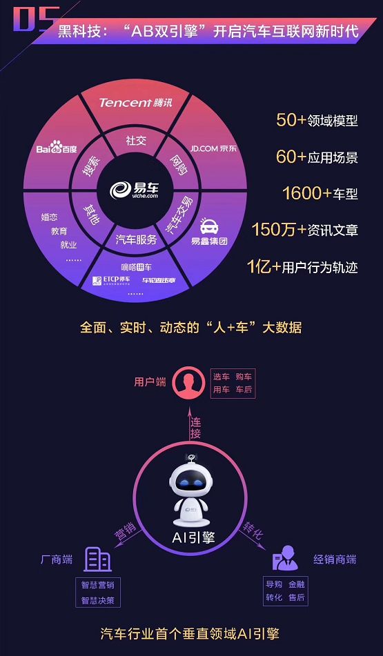 在厂商一端,易车则计划推出智能分析辅助决策产品「通天晓」,帮助主机厂通过数据反馈营销效果,实现智能营销诊断。