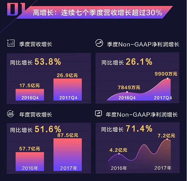 1、交易服务业务增长迅速。同比增长149.6%,年收入从2016年的15.5亿元增长至了2017年的38.7亿元;
