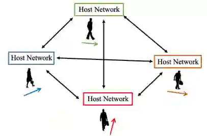 我们的算法结构如上图5所示,Host Network是基于LSTM的轨迹预测网络;Hub Network是基于LSTM的全局时序交互计算网络。在论文具体的实现中,首先Hub Network的静态地图模块是通过接受所有障碍物同一时刻的位置信息、全连接网络和最大池化操作得到一个定长的特征向量;然后动态地图模块使用LSTM网络对上述的特征向量进行时序编码,最终得到一个全局交互向量。Host Network首先根据行人(假设要预测第一个行人下时刻的位置)的位置去动态地图中查询自己当前位置区域内的交互