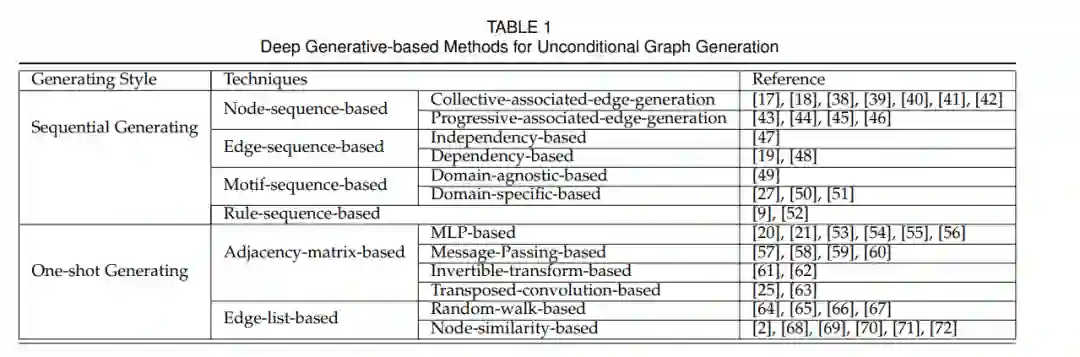 在深度图生成方面已经开展了各种先进的工作,从一次性图生成到顺序图生成过程,适应了各种深度生成学习策略。这些方法旨在通过不同领域的工作解决上述挑战中的一个或几个,包括机器学习、生物信息学、人工智能、人类健康和社交网络挖掘。但是,不同的研究领域开发的方法往往使用不同的词汇,从不同的角度解决问题。