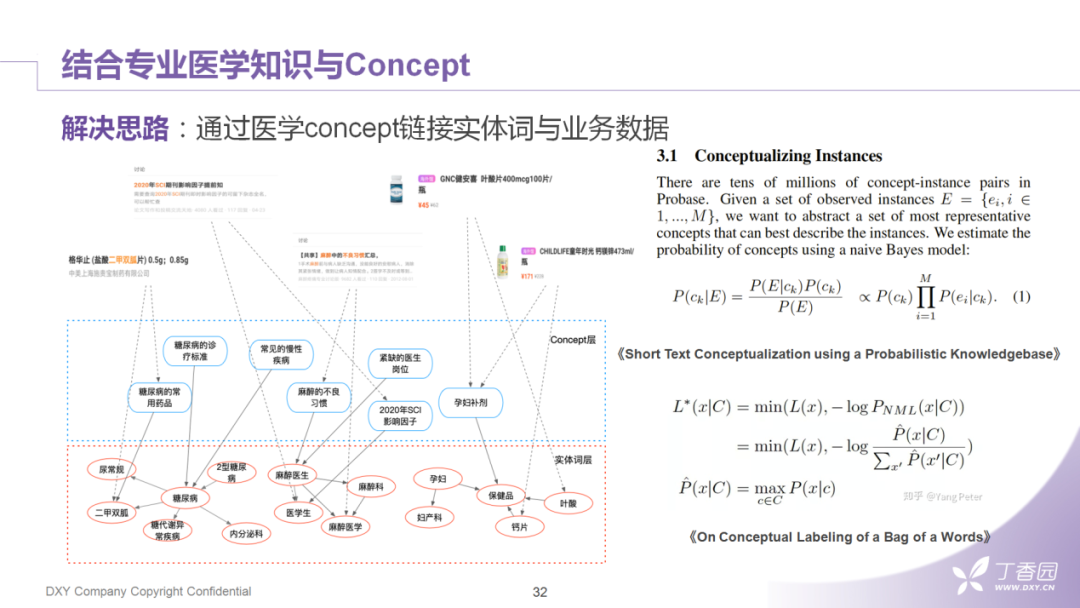 第二点是从用户行为日志中挖掘出concept,然后把这些concept作为跨越业务数据和底层专业医学知识的语义媒介。