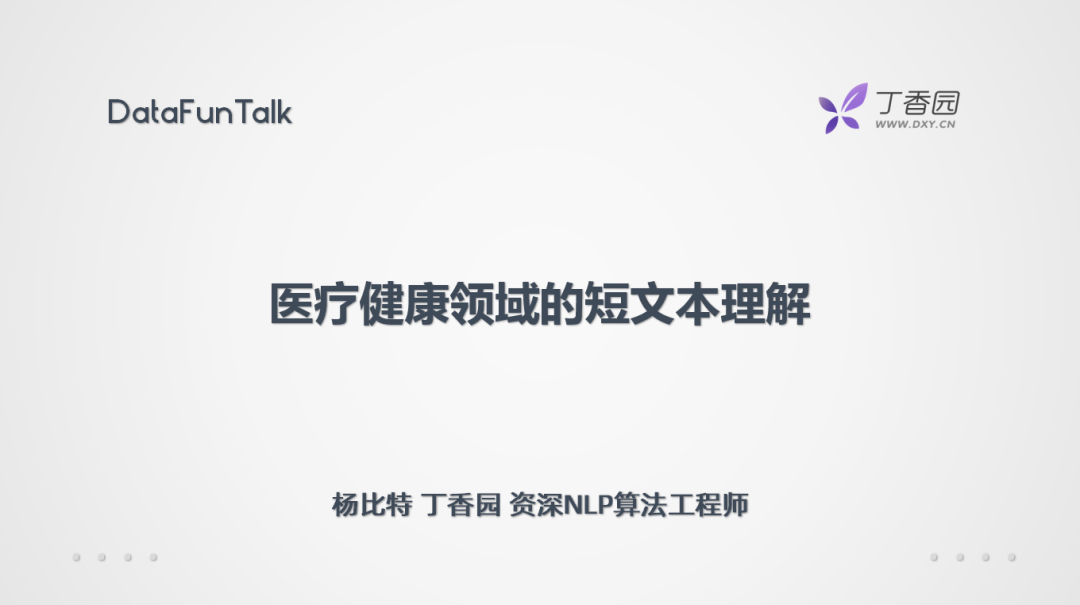 杨比特,硕士毕业于军事医学科学院,负责丁香园大数据NLP组,目前专注于医疗健康领域下的自然语言处理、知识图谱构建与应用、搜索与推荐技术。