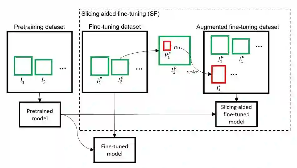 为了解决小目标检测问题,作者提出了一个在微调和推理阶段基于切片的通用框架。将输入图像划分为重叠的切片,对于小目标相对于输入网络的图像产生相对较大的像素区域。