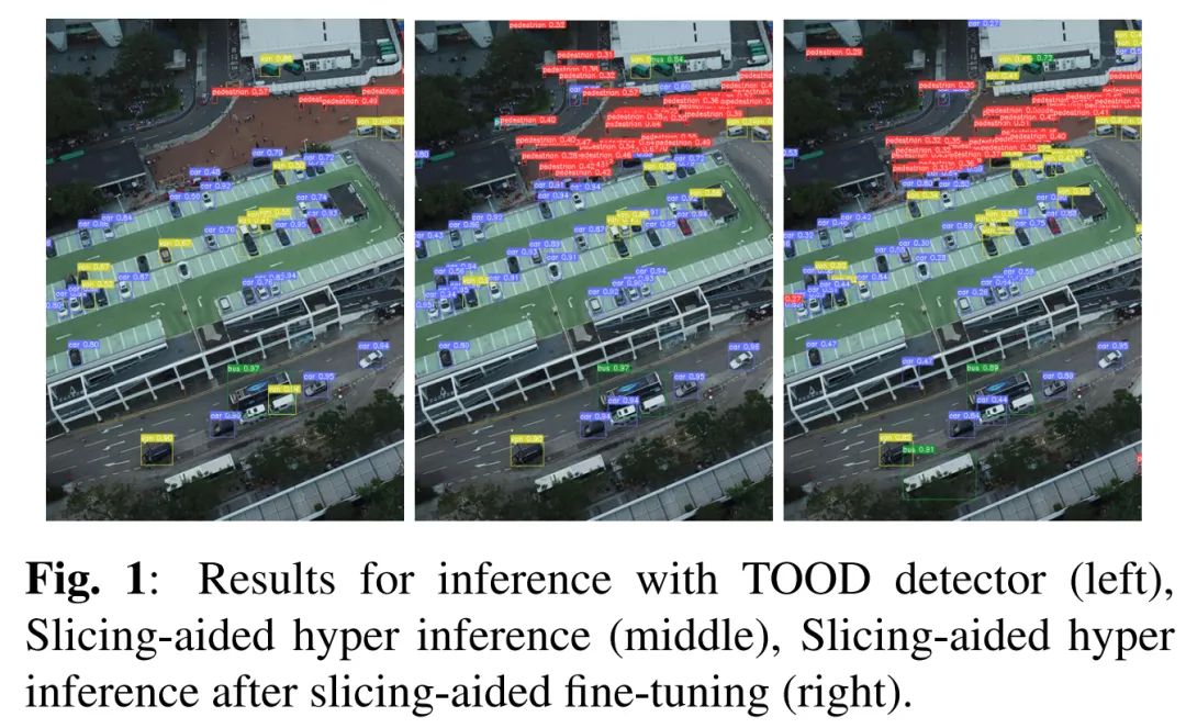 检测小目标和远程目标检测是监控应用中的一个主要挑战。这些物体由图像中少量的像素表示,缺乏足够的细节,使得传统的检测器难以检测。在这项工作中,提出了一个名为切片辅助超推理(SAHI)的开源框架,该框架为小目标检测提供了一个通用的切片辅助推理和微调管道。所提出的技术是通用的,因为它可以应用在任何可用的目标检测器之上,而不需要进行任何微调。