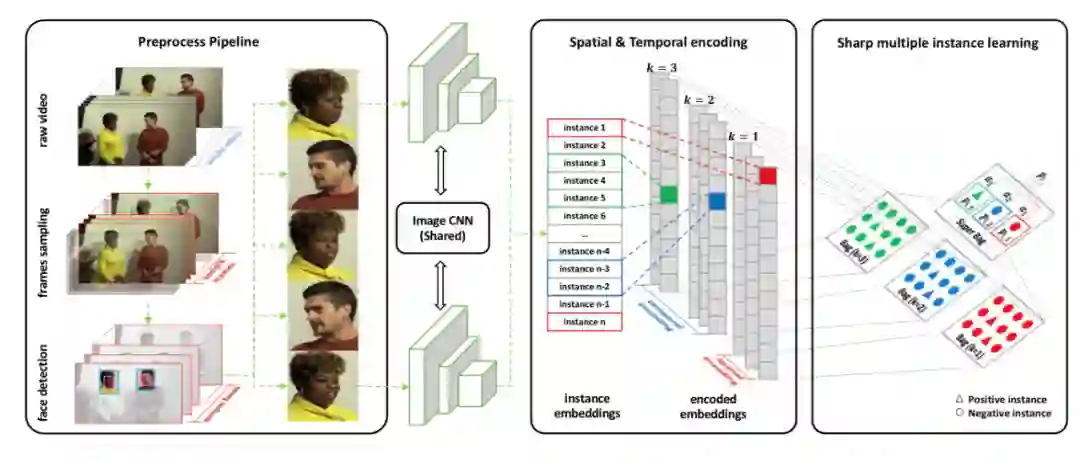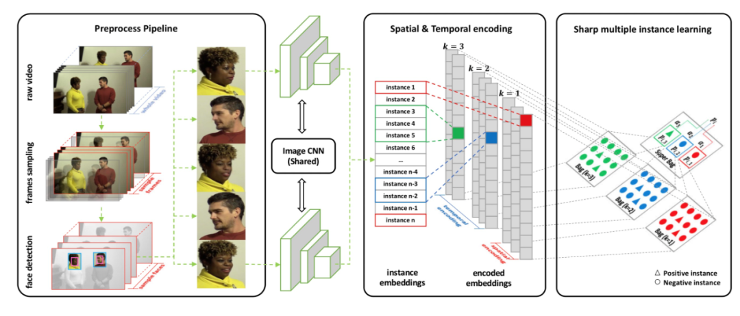 回顾 DeepFake 视频的定义:只要视频中有一张人脸被篡改,那么该视频就被定义为 DeepFake 视频。这和多实例学习是吻合的。在多实例学习中,一个包由多个实例组成,只要其中有一个实例是正类,那么该包就是正类的,否则就是负类。