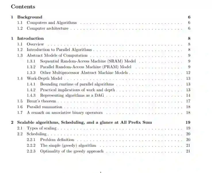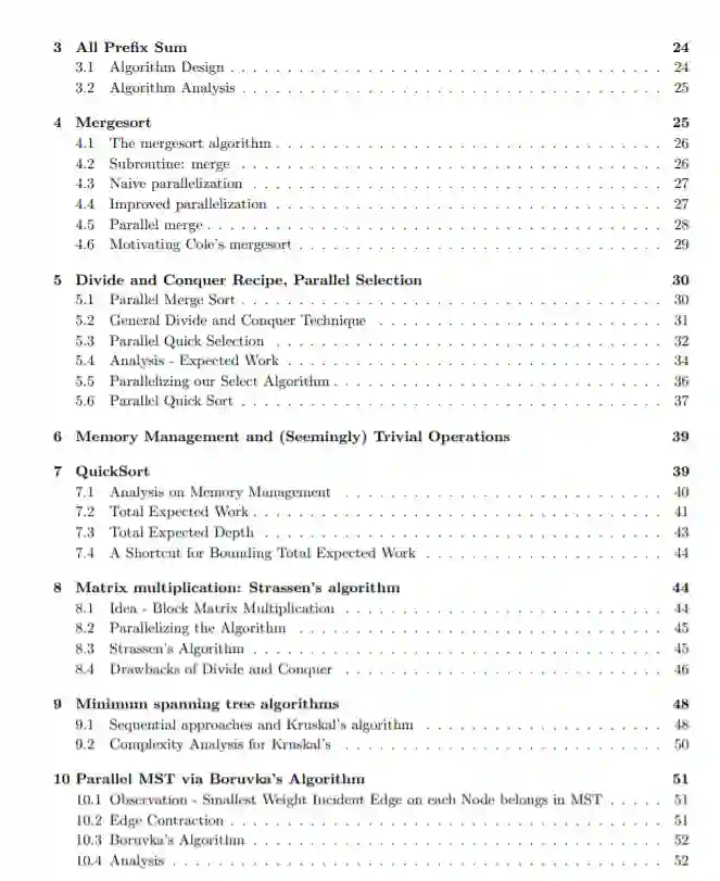 第一节课的重点是分析今天能够进行并行计算的典型个人计算机中的算法行为,第二节课的重点是今天能够进行分布式计算的典型公共云中的此类个人计算机集群中的算法行为。我们将从第1节中简要介绍的基本原理开始,并努力理解过去几十年来算法的重大突破。并行计算是指在一台机器上使用多个处理器和共享内存进行计算。并行计算和分布式计算虽然密切相关,但它们都提出了独特的挑战——主要是并行计算情况下的共享内存管理和分布式计算情况下的网络通信开销最小化。理解并行计算的模型和挑战是理解分布式计算的基础。课程内容反映了这一点,首先在并行环境中涵盖各种经典的、数值的和图形的算法,然后在分布式环境中涵盖相同的主题。目的是强调每个设置带来的独特挑战。