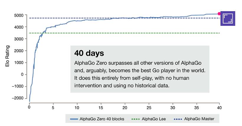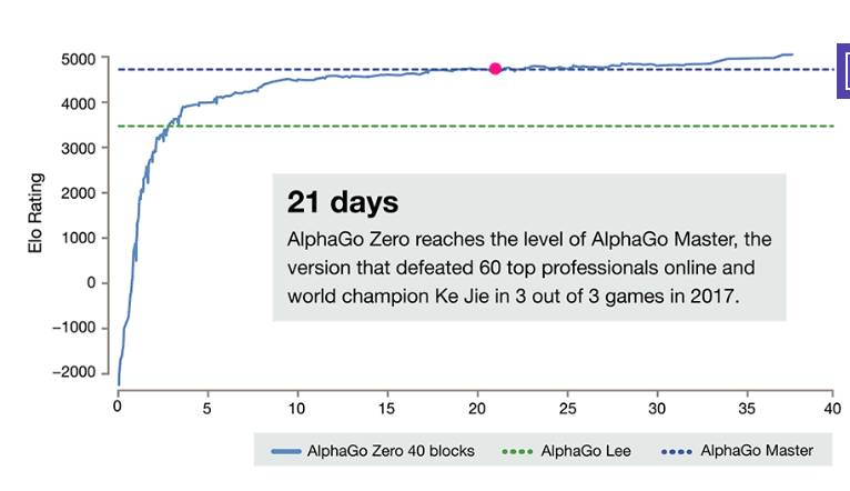 AlphaGo 确实很厉害,尤其是最新发表的 AlphaGo Zero(点击阅读原文),完全不用人类棋手的棋谱,从零开始学起,大概学习21天就能完胜柯洁,学习40天就能完胜之前的任何AlphaGo版本。