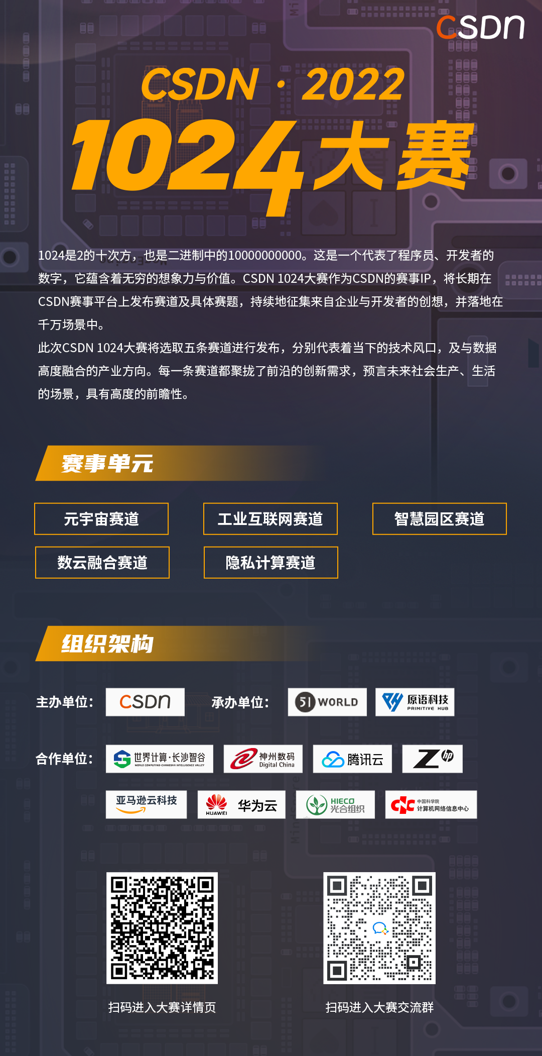本次 CSDN 1024 大赛设置三个赛事单元,分别是公共赛道、定制赛道、承办赛事。