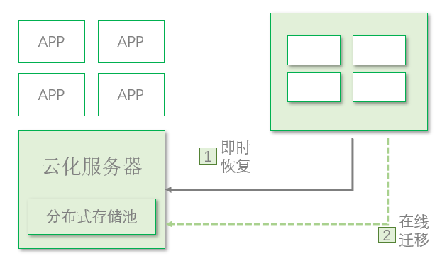 如果还是按照现有的传统数据恢复方案,对于高度敏捷的云平台,慢如蜗牛的恢复速度,显然是不能容忍的。即时恢复,就是采用先在数分钟内(最短时间)应急恢复业务,然后再在线迁移。