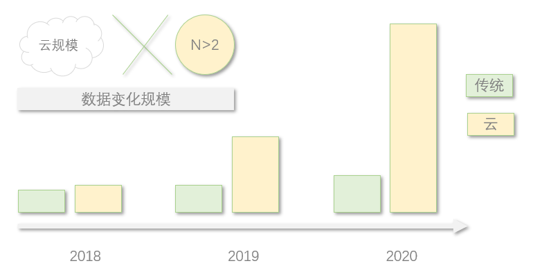 而在云化时代,数据增长与变化的速度会很快。半年到一年的扩容周期是非常正常。因此拿已有的经验去确定方案,后期的成本更高,系统升级、扩容、迁移等管理就很复杂。