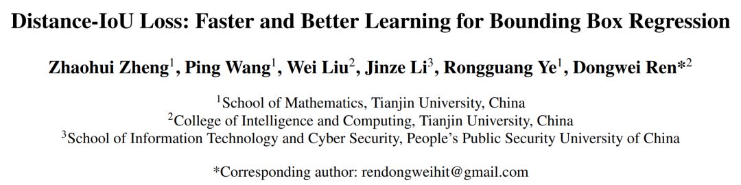 《Distance-IoU Loss: Faster and Better Learning for Bounding Box Regression》
